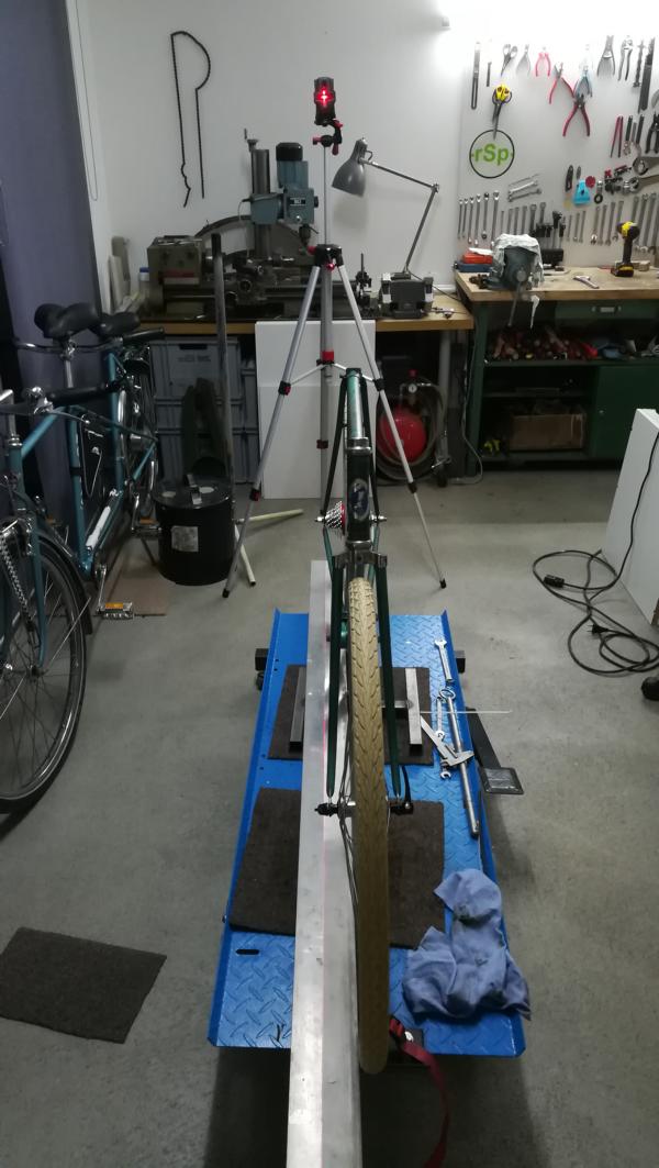 Habe zum erstenmal mit einem einfachen Laser den Rahmen ausgemessen und konnte ihn so auf einen Millimeter genau richten. Auch den Kettenlauf kann man auf diese Weise kontrollieren, eine tolle Sache.